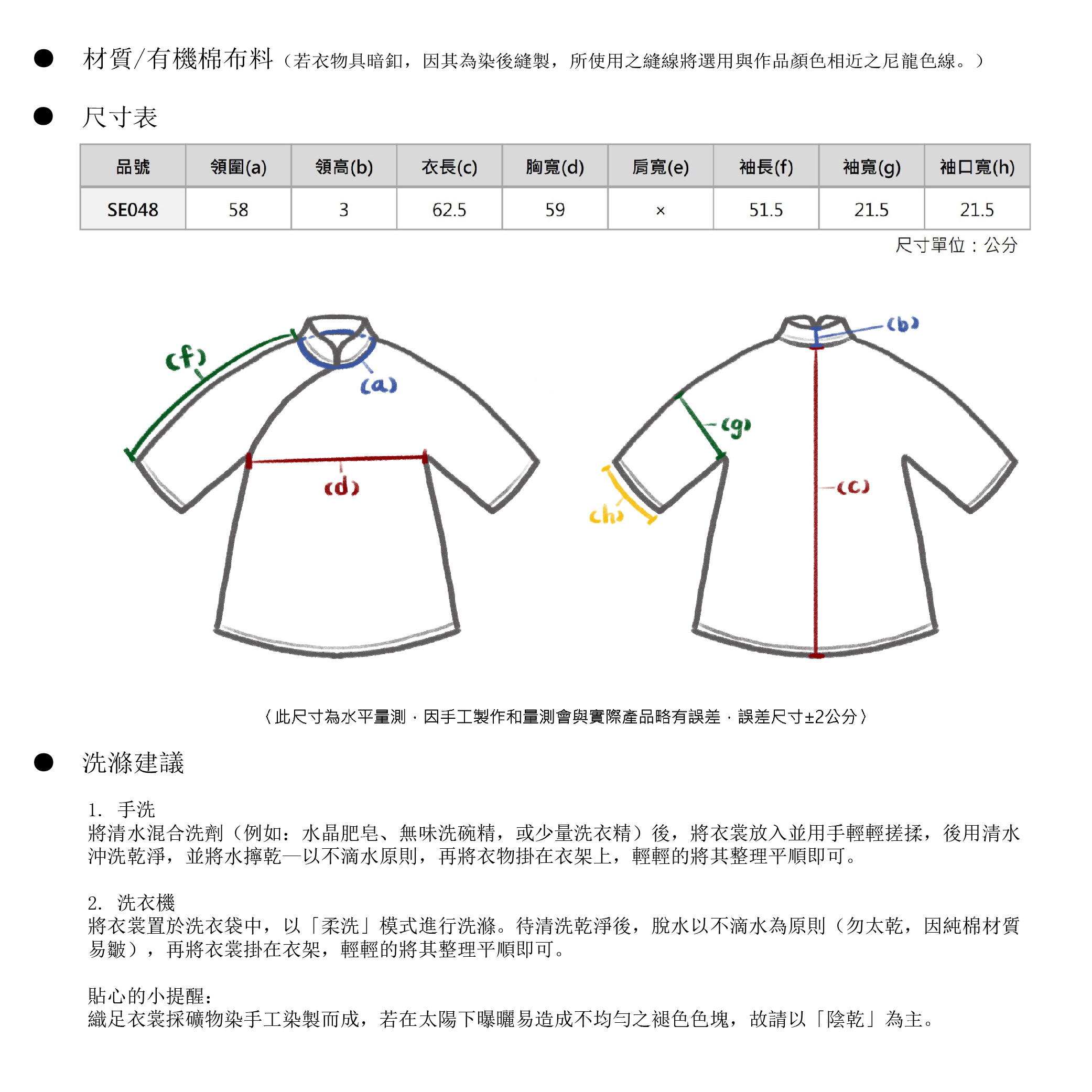 經典荷—蝴蝶花釦有機棉寬版上衣
